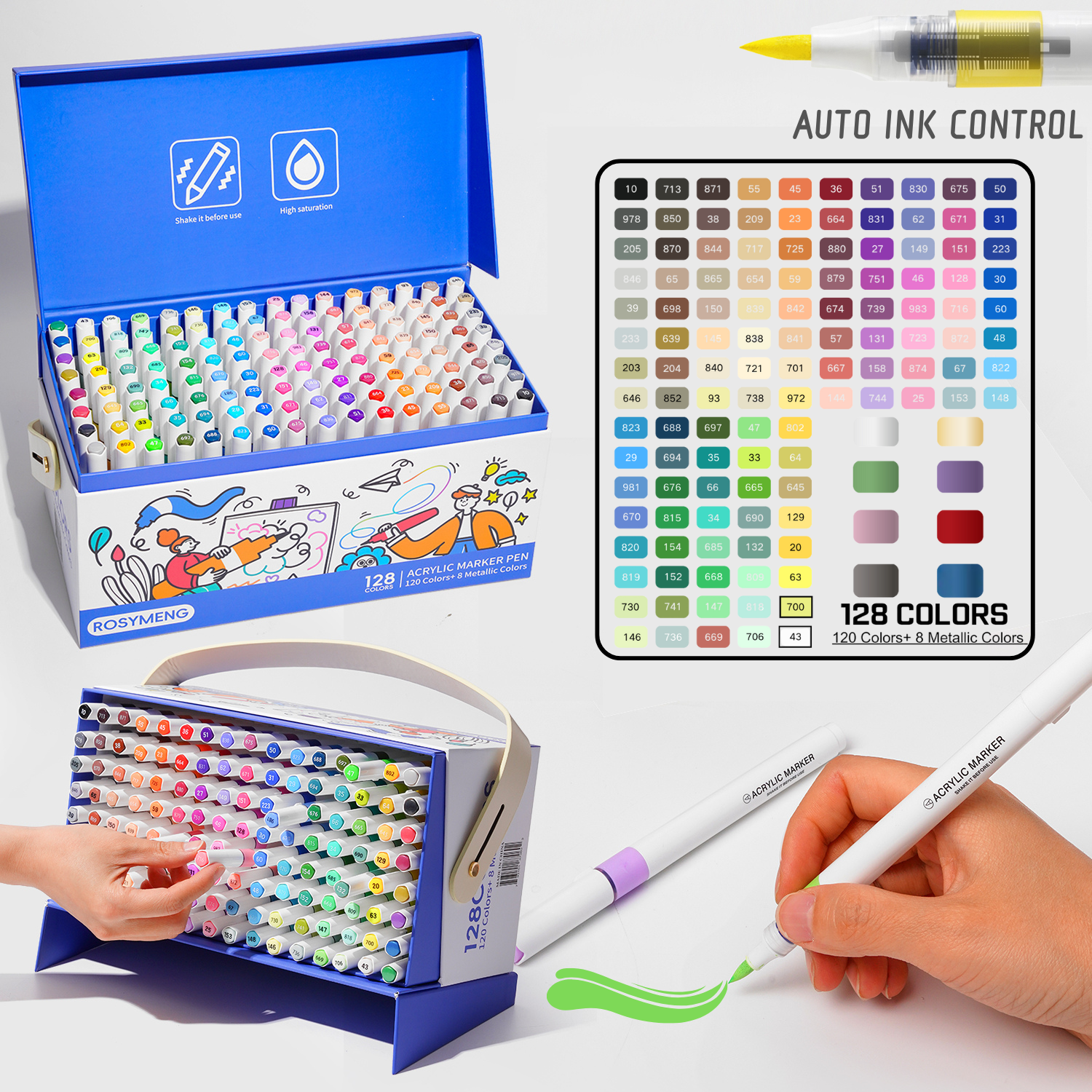 【128 Vibrant Colors Acrylic Paint Pens】Come with 128 vibrant colors(8 Metal Colors), ideal for making Crafts for Adults. Brush Pens is a perfect choice to design your scrapbook, planner, rocks painting, Christmas card, birthday, greeting card, or decorating everyday household stuff.